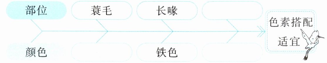 1. 读画线句,完善思维导图,感受白鹭的色彩美。