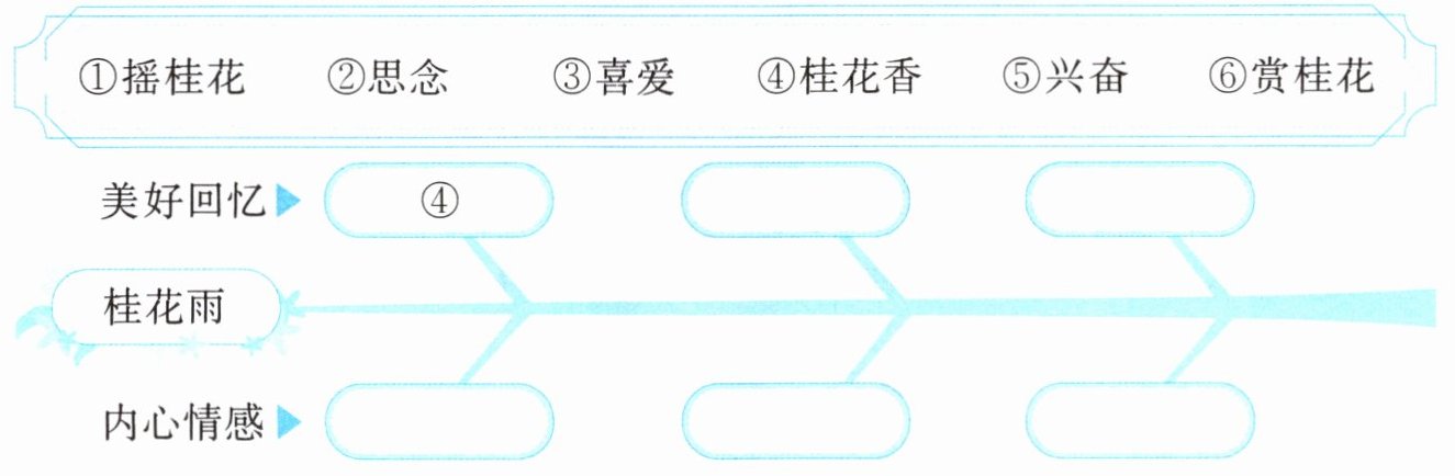①摇桂花 ②思念 ③喜爱 ④桂花香 ⑤兴奋 ⑥赏桂花