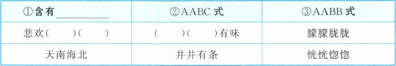 | ①含有______ | ②AABC式 | ③AABB式 |