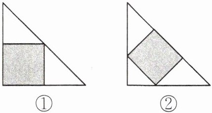 13. 如图,图①和图②是两个完全一样的等腰直角三角形,如果图①中正方形的面积是18平方厘米,那么图②中正方形的面积是( )平方厘米。
