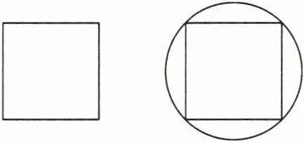 2. 小方桌面的边长是1米,把它的四边撑开,就成了一张圆桌面(如图),求圆桌面的面积。
