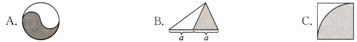 6. 下面的图形中,空白部分与涂色部分的面积相等但周长不相等的是( )。