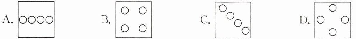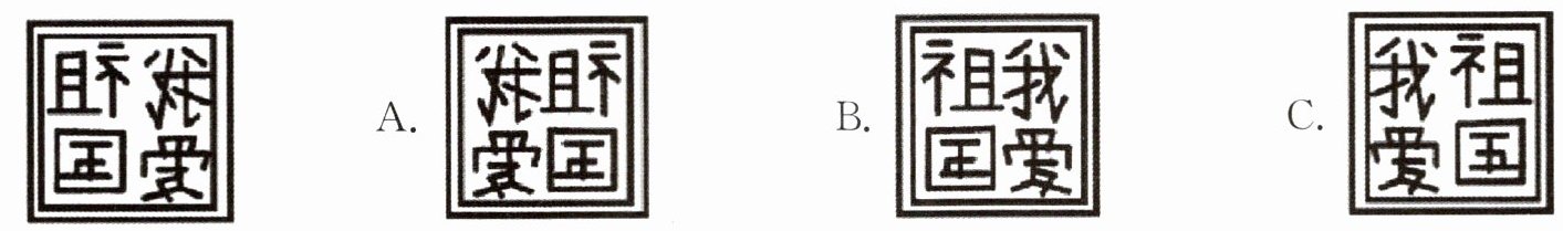 3. 笑笑非常喜爱《小英雄雨来》中“我们是中国人,我们爱自己的祖国”这句话。于是,她自己刻了一枚如左下图所示的印章。其余的三个图案中用这枚印章印制的是( )。