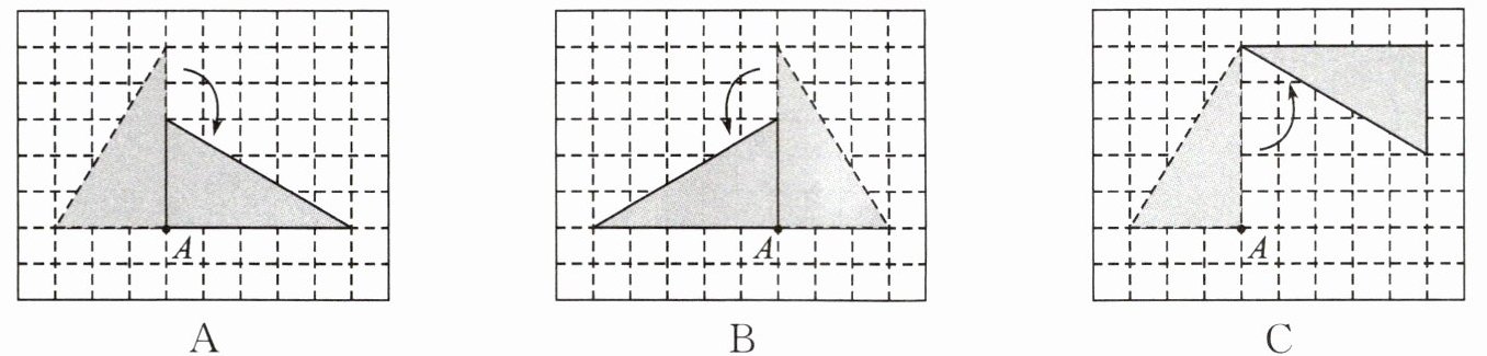 4. 下面能表示把三角形绕点A按逆时针方向旋转90°的是( )。