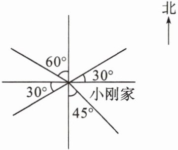 学校在小刚家东偏北 30°的位置;银行在小刚家北偏西 60°的位置;儿童公园在小刚家东偏南 45°的位置;医院在小刚家西偏南 30°的位置。