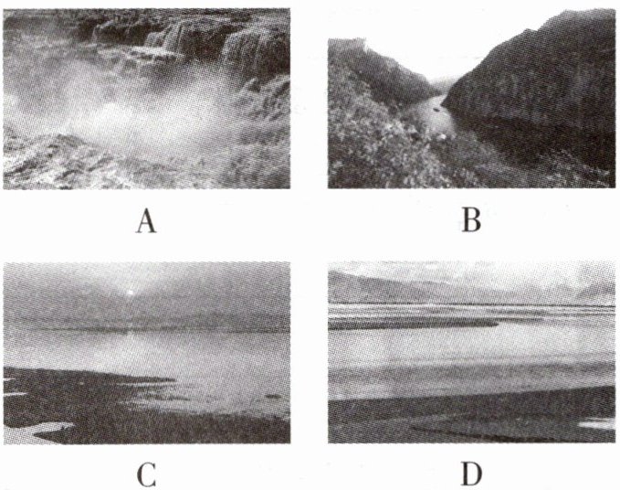 (2)【辨景观】地理学家郦道元在《水经注》中这样描述:“自三峡七百里中,两岸连山,略无阙处。重岩叠嶂,隐天蔽日,自非亭午夜分,不见曦月。”下图中能体现文中所描绘的景观的一项是(