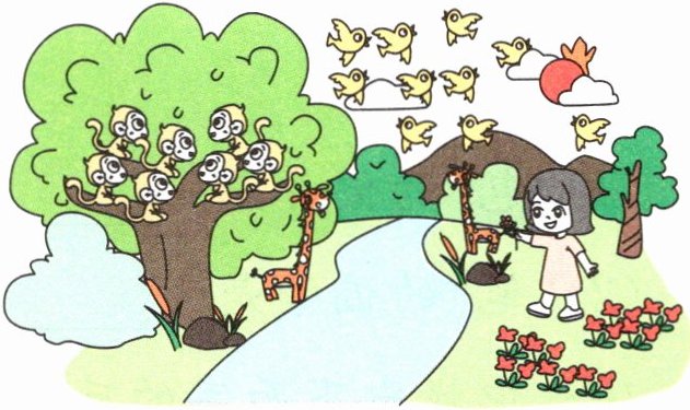 八、看图,先写两个词语,再写一两句话。