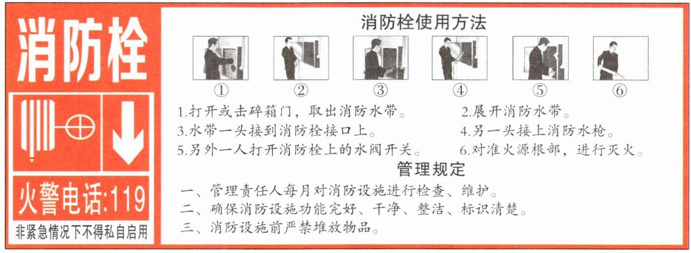 二、阳阳在学校楼梯间看到消防设备上张贴了这张图片,请你仔细阅读,完成练习。