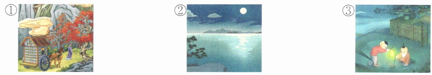 1.停车坐爱枫林晚 霜叶红于二月花 2.湖光秋月两相和 潭面无风镜未磨 3.知有儿童挑促织 夜深篱落一灯明