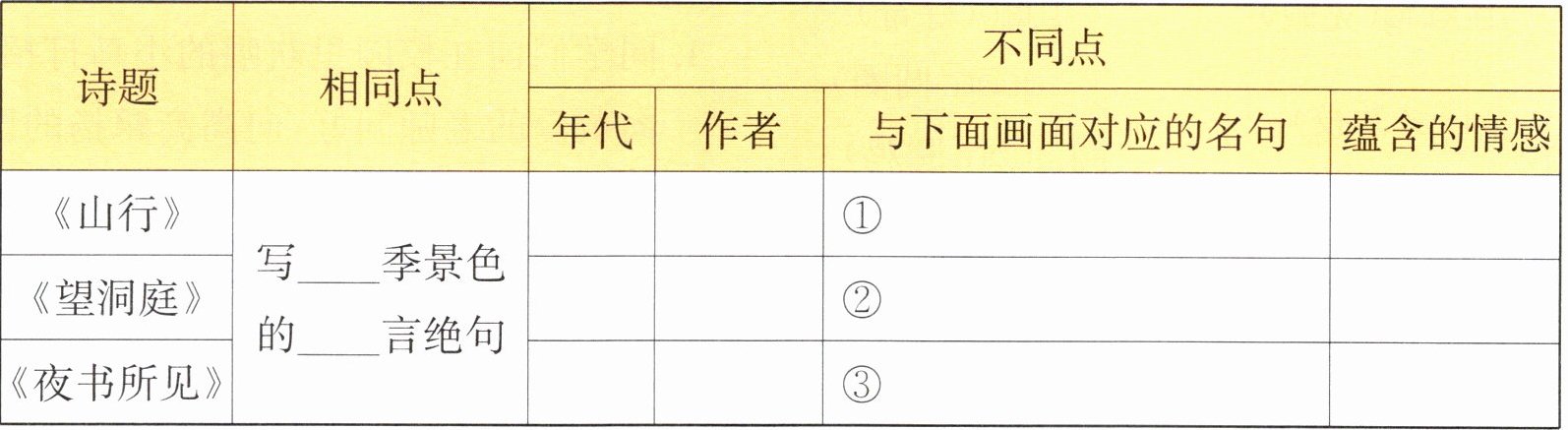 三、品读古诗,完成下面的表格。