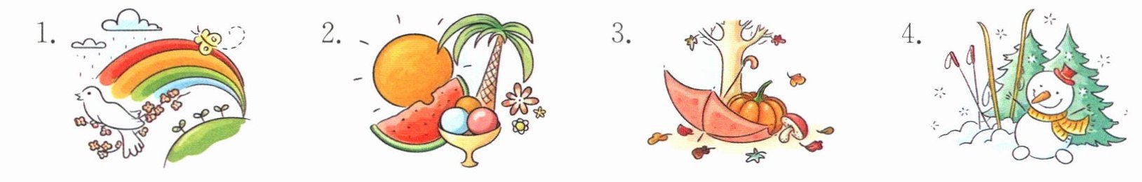 |⑤寒冷|⑥凉爽|⑦大雪纷飞|⑧春光明媚|