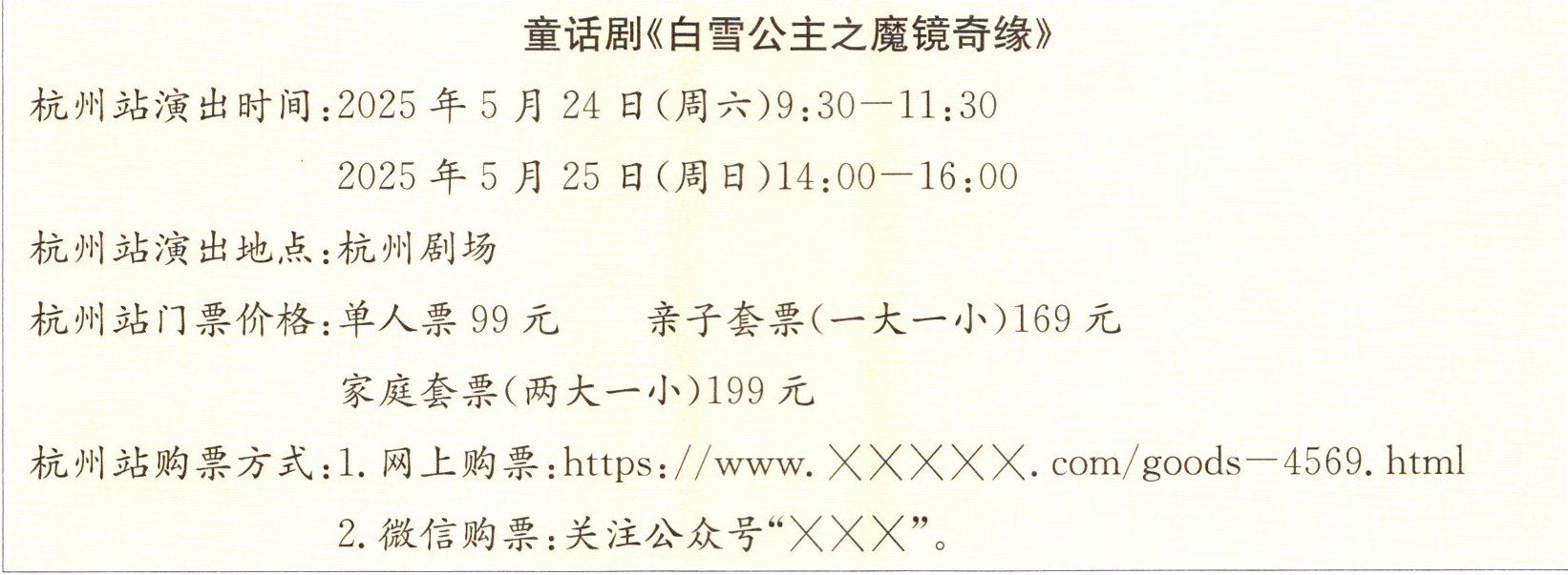 )A. 童话剧《白雪公主之魔镜奇缘》是在杭州剧场上演。