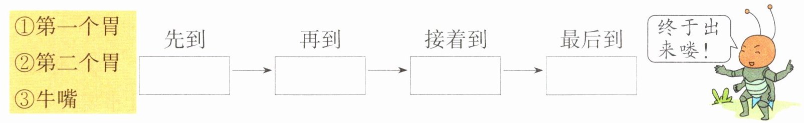 五、红头的旅行真是惊险,你能填出它在牛身体里的旅行路线吗?(填序号)