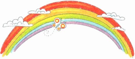 ⑤“快回头!”太阳公公说。小水滴们一齐回过头。啊,多漂亮啊!天空中出现了七种美丽的颜色。“这是怎么回事?”小水滴们惊讶极了。“是你们空气中的小水滴把我的白光分开了呀!”