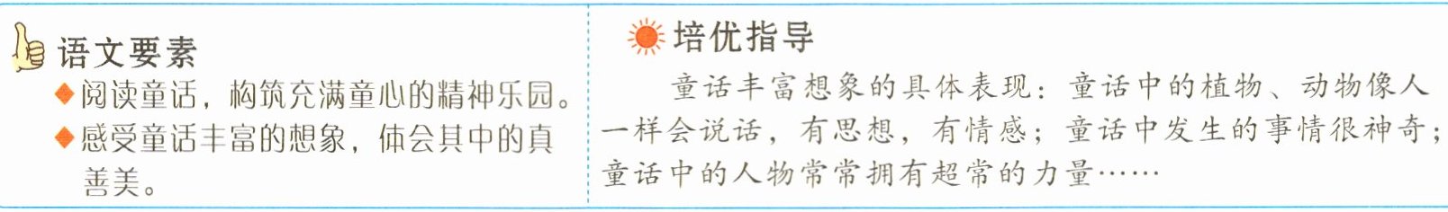 童话丰富想象的具体表现:童话中的植物、动物像人一样会说话,有思想,有情感;童话中发生的事情很神奇;童话中的人物常常拥有超常的力量……