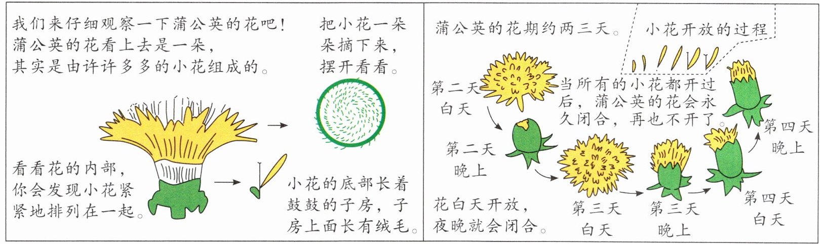 3. 蒲公英的花只开两三天,所有小花都开过后,蒲公英的花就永久闭合。 (