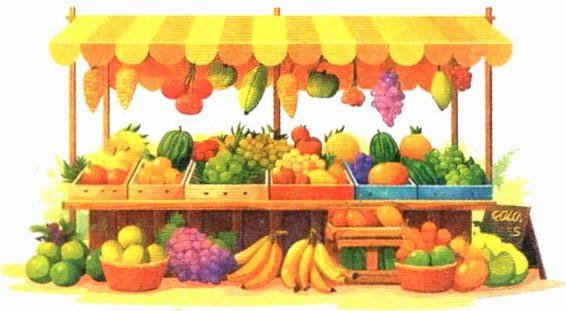 红苹果、黄香蕉、绿芒果、紫葡萄、绿西瓜,真像个热闹的水果派对。