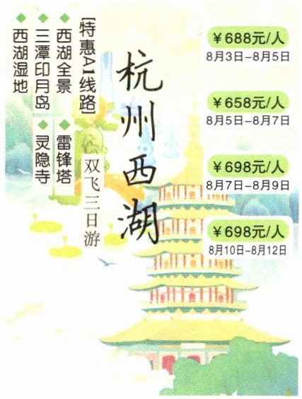 ”。这处美景位于浙江省杭州市,杭州风景秀丽,谚语“上有天堂,下有苏杭
