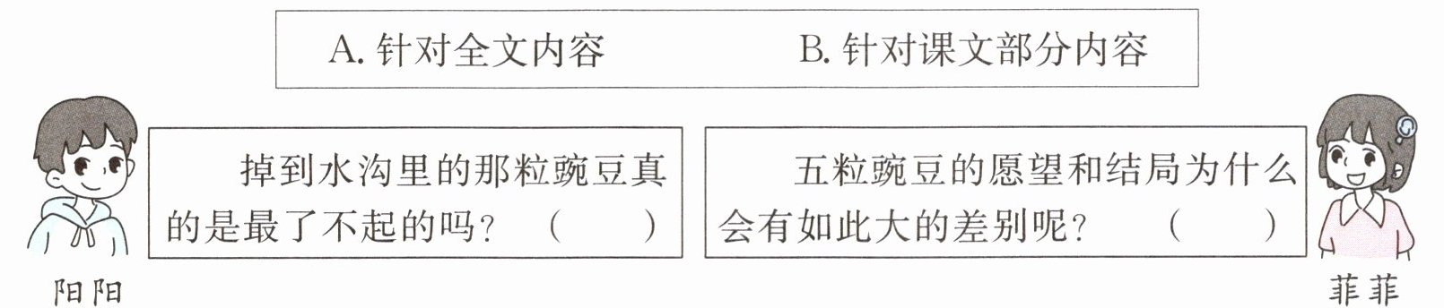 ) 菲菲 五粒豌豆的愿望和结局为什么会有如此大的差别呢?(A