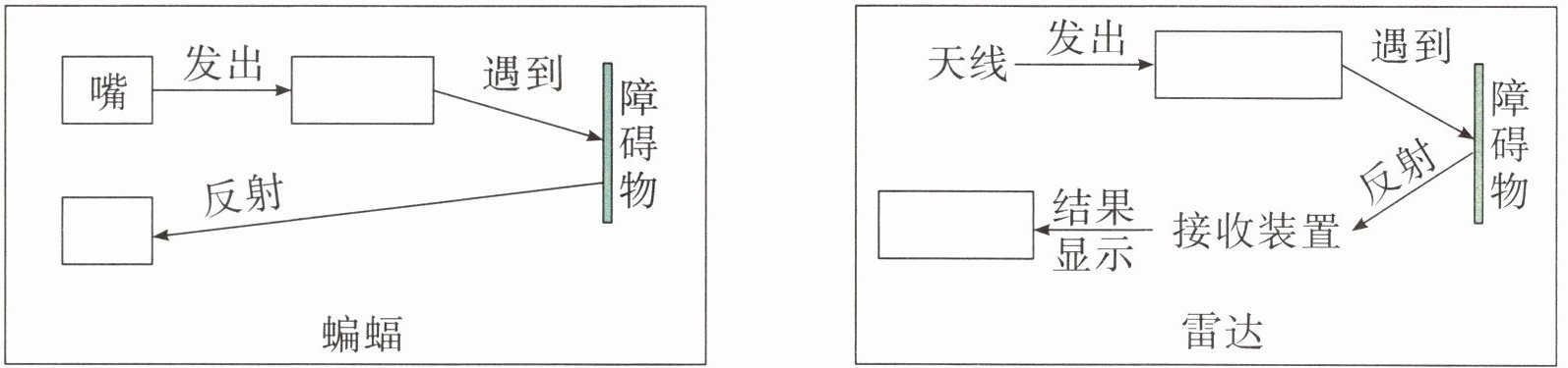 1.科学家经过反复研究,终于揭开了蝙蝠能在夜里飞行的秘密。 2.它一边飞,一边从嘴里发出超声波……蝙蝠就立刻改变飞行的方向。 3.反复 终于 4.(从左到右)超声波 耳朵 无线电波 荧光屏 5.蝙蝠 蝙蝠探路 6.C 示例:自然界中还有哪些动物能够发出超声波?
