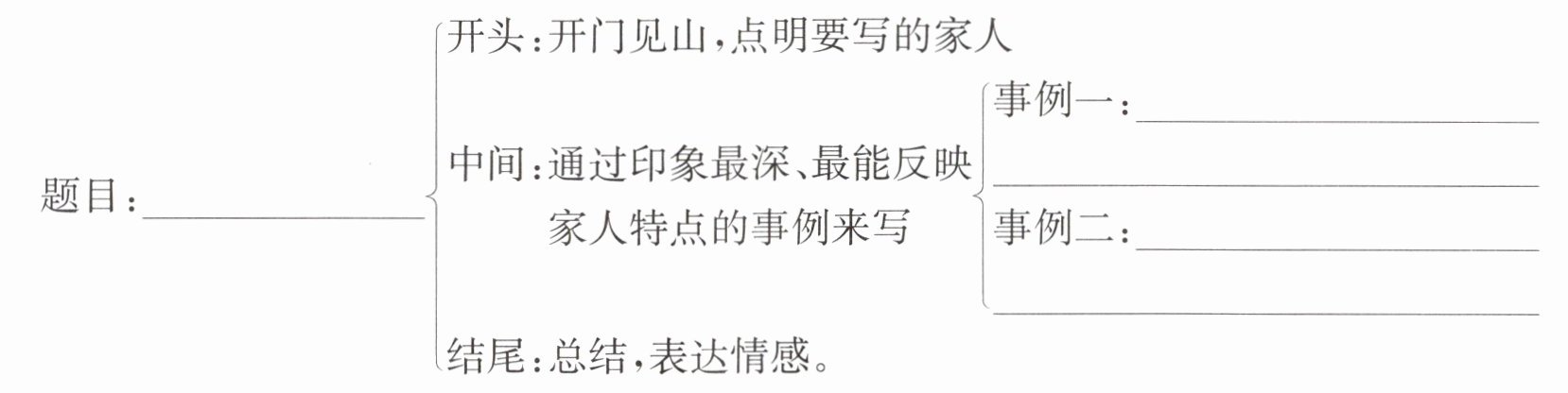 $\begin{cases}开头:开门见山,点明要写的家人 \\中间:通过印象最深、最能反映家人特点的事例来写 \begin{cases}$