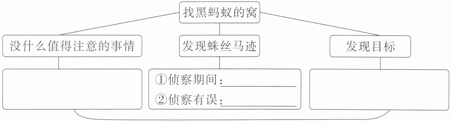 。3. 根据文章内容,用红蚂蚁的表现补全下面的思维导图,感受作者是如何观察的。