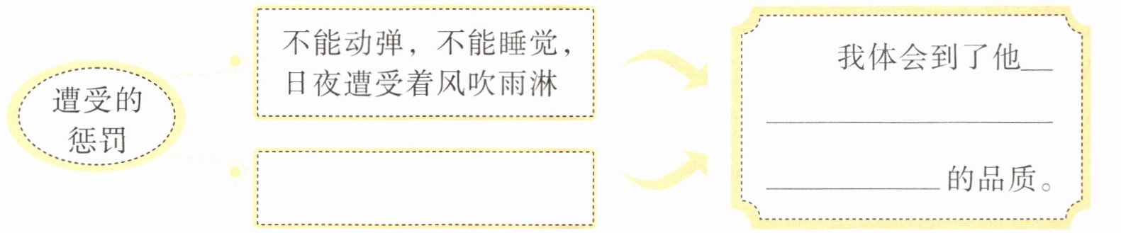2. 普罗米修斯遭受了哪些惩罚?从中你体会到他怎样的精神品质?填一填。