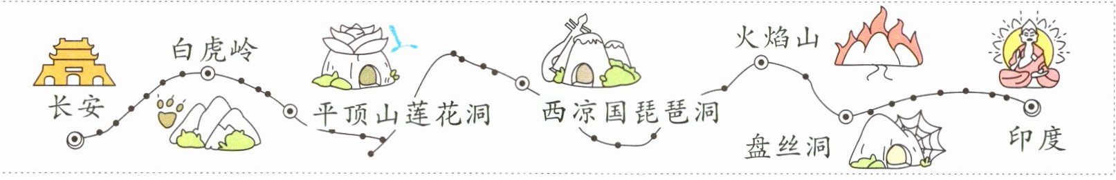 。3. 材料二是某同学绘制的西天取经路线图。该同学结合路线图还制作了《西天取经“八十一难”记录卡》,如左下图。请你也照样子做一张吧!