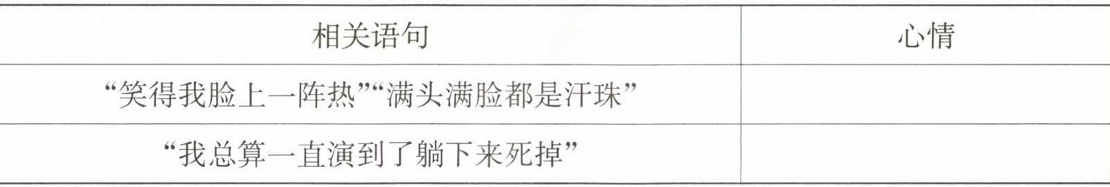 (2)“我”为什么记不起来怎么演完的呢? 4.示例:你不要太伤心了,为了这场演出你已经尽力了,不会豁虎跳也没关系,你敢上台表演就已经胜过很多人了。