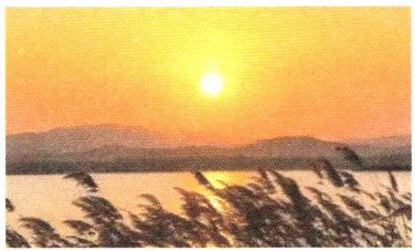 示例:夕阳斜照江面,江水被残阳染得红彤彤的。