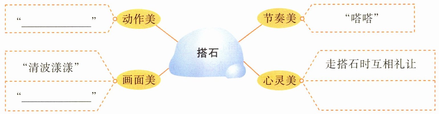 五、在本课中,作者说搭石“联结着故乡的小路,也联结着乡亲们美好的情感”。想一想,在你的生活中有没有一些联结着某种情感的事物,试着补充下面的文段。
