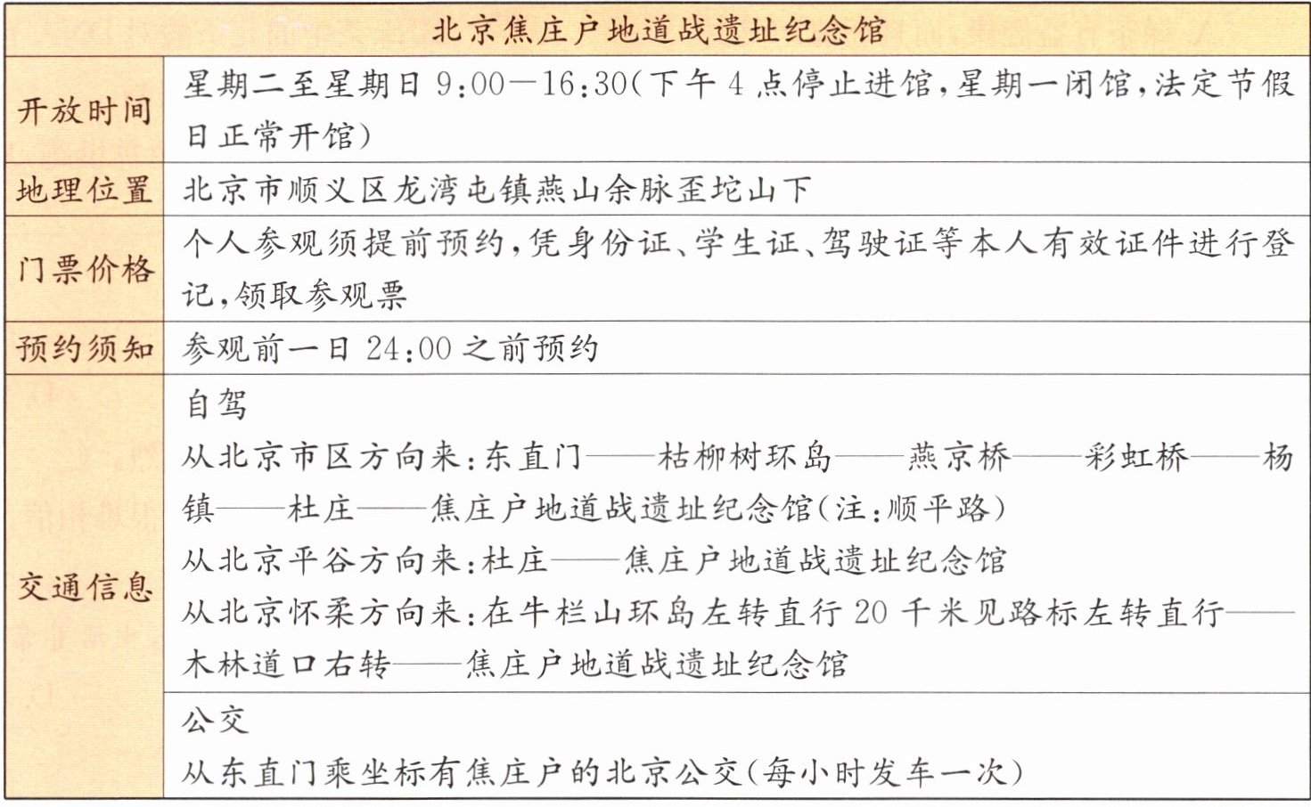 (3)如果去焦庄户地道战遗址纪念馆参观,小明一家需要提前预约门票。(