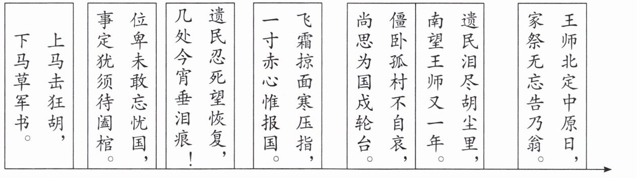 1.D 2.关河梦断何处 尘暗旧貂裘 鬓先秋 心在天山 壮志未酬、报国无门的愤慨 3.忧国 失望和痛苦 不去抗金收复失地的不满和愤慨 4.示例:陆游是一位伟大的爱国词人,他一生都胸怀统一国土的壮志,生前最后一刻还在为国家着想。我感受到了热烈、真挚的爱国情怀。我想对陆游说:您的爱国之情一直激励着无数华夏儿女,感召着无数胸怀家国的仁人志士前赴后继。作为一名新时代的中国少年,我将继续弘扬您的爱国精神,努力学习,发愤图强,为建设祖国作贡献。