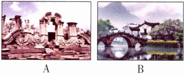)2. 看到右图中圆明园今夕强烈的对比,你想说些什么呢?