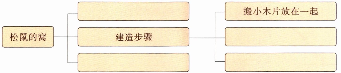 。4. 选段围绕“松鼠的窝”依次介绍了哪些内容?完成下面的图表。