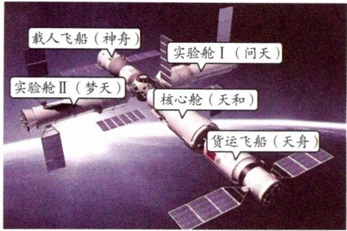 ②根据我国空间站建造规划,不久的未来,将建成以核心舱为控制中心,问天、梦天实验舱为主要实验平台,常年有人照料的空间站,其结构如右图所示。