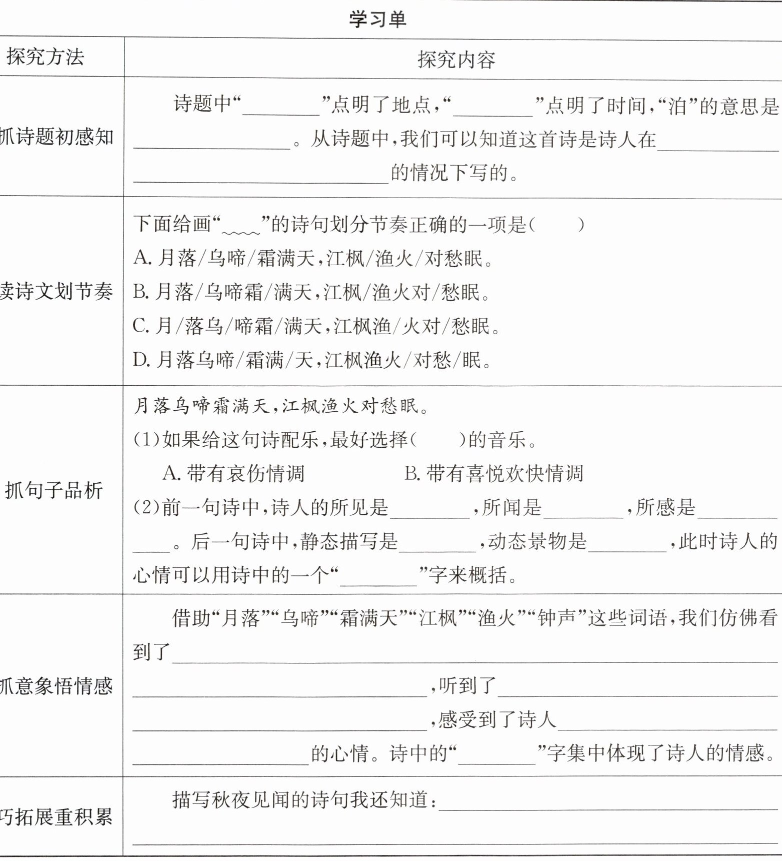 |3. 抓句子品析|月落乌啼霜满天,江枫渔火对愁眠。
