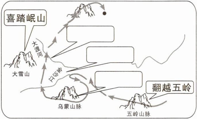 (1)根据诗意,在上图中的方框里填写长征途中的典型事件。