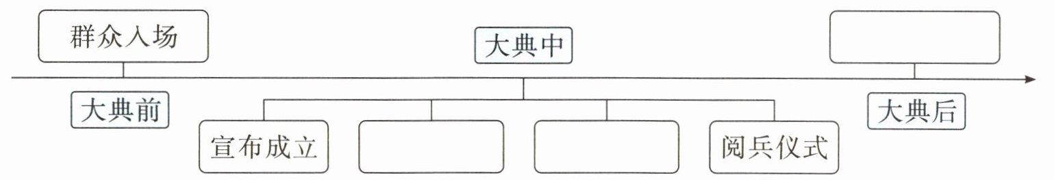 四、根据课文内容,概括场面,理清开国大典的过程,补全下列思维导图。