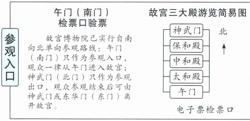 这部分材料。故宫三大殿自南向北单向的参观路线为:(午门