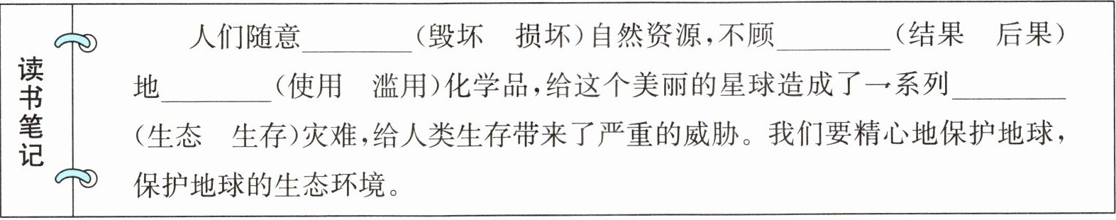 二、下面是阳阳的读书笔记。读一读,选词填空。