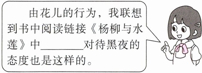 由花儿的行为,我联想到书中阅读链接《杨柳与水莲》中________对待黑夜的态度也是这样的。