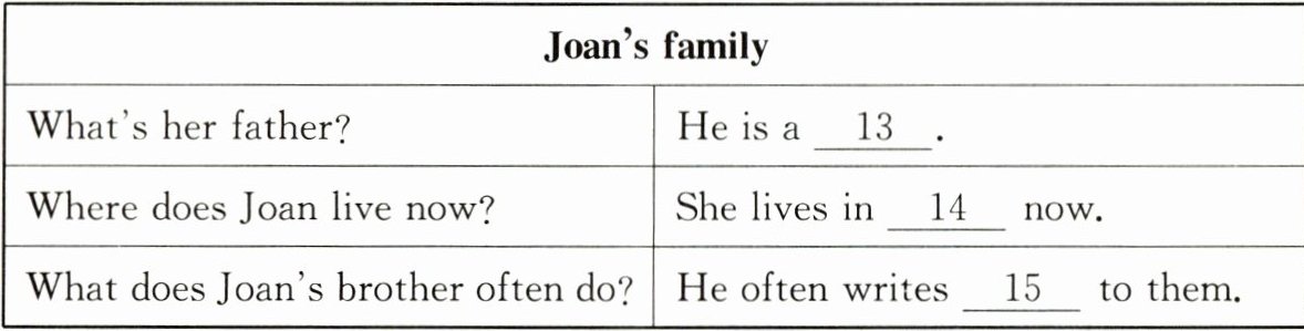 听第一篇短文,完成第 13~15 小题。请根据短文内容,选择正确答案,完成信息记录表。