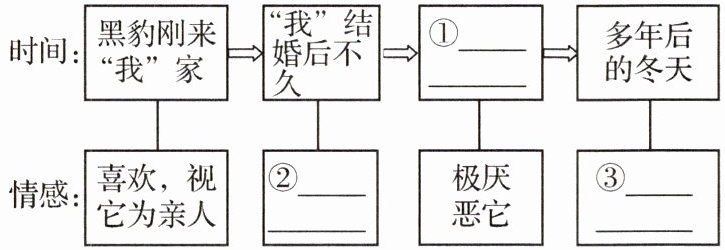 1.* 按照时间顺序梳理“我”对黑豹的情感变化,将下图补充完整。(3 分)