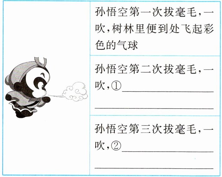 | 孙悟空第二次拔毫毛,一吹,①______ |