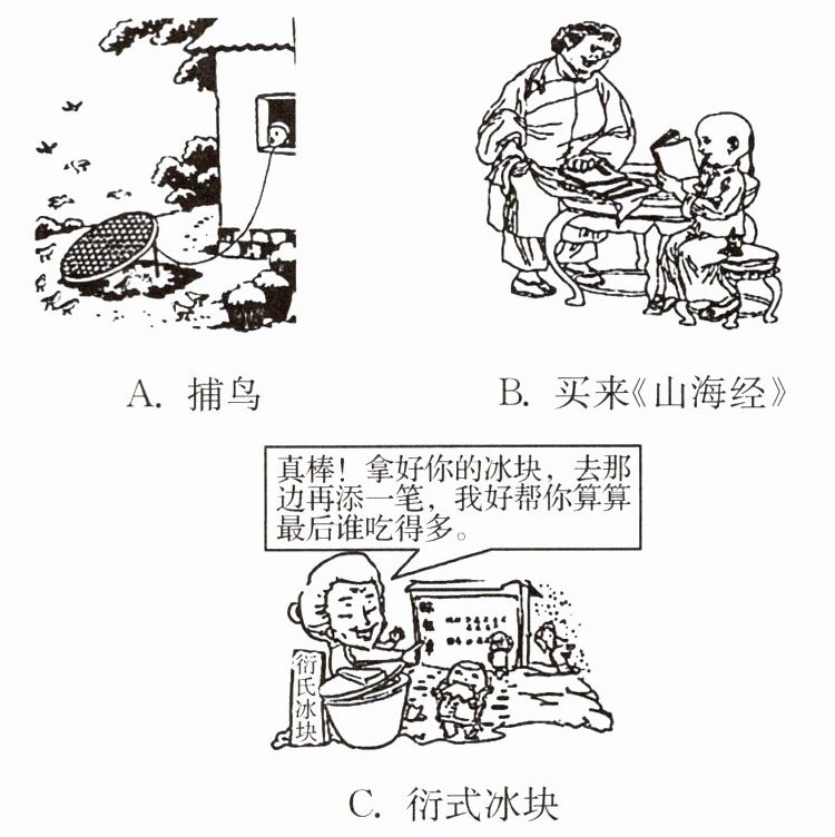 A. 捕鸟 B. 买来《山海经》 C. 衍式冰块
