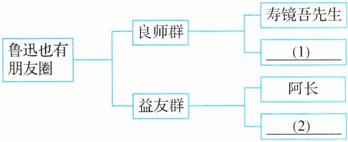 4. 读完《朝花夕拾》后,班级拟开展以“细数朝花夕拾感”为主题的分享活动,小语绘制了“鲁迅也有朋友圈”的思维导图。请你帮忙补充完整,并结合内容说明理由。(4 分)