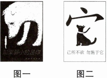 [示例一]我推荐图一。图一中,一只巨大的狗正低头冷漠地审视着渺小的人,强烈的反差让人顿失安全感,下面的文字“如果弱小的是你……”引人换位思考,能唤醒人类关爱动物的良知,十分契合活动的主题。[示例二]我推荐图二。图二中的小狗被绳子勒住了脖子,仰头眼巴巴地期盼着主人归来,图片构成一个“它”字。图片下面的文字“己所不欲,勿施于它”马上让人想到“己所不欲,勿施于人”,言下之意是:自己不希望遭受的事,也不要施加给它。这里是呼吁人们要多关爱动物,凸显主题“关爱动物,从我做起”。(4分)