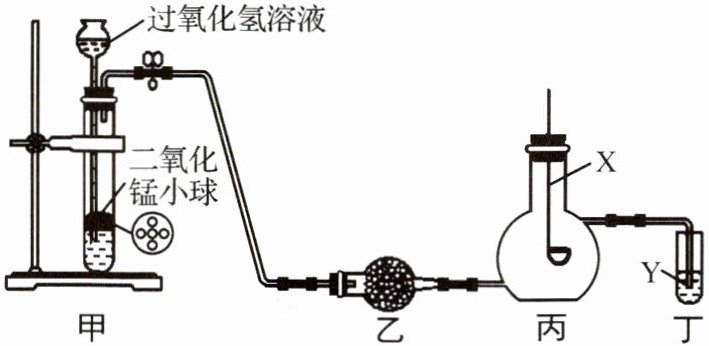 (3)打开弹簧夹,在 X 中点燃红磷,丙装置内可观察到的现象是______,在 X 中点燃木炭粉,Y 为澄清石灰水,丁装置可观察到的现象是______;在 X 上缠绕细铁丝并点燃,需要在丙装置底部铺上一层细沙,其作用是______。