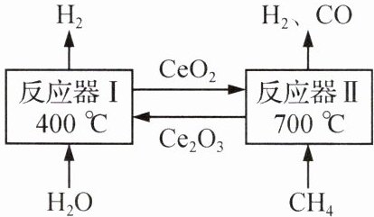 (2) ①H₂O+Ce₂O₃$\frac{\underline{\;400℃\;}}{}$2CeO₂+H₂ ②0.3 解:设理论上1.0吨甲烷和足量水蒸气反应生成氢气的质量为x。CH₄+H₂O$\frac{\underline{\;催化剂\;}}{\triangle }$CO+3H₂ 16 6 1.0 t×80% x $\frac{16}{6}=\frac{1.0\mathrm{t}× 80\%}{x}$ x=0.3 t 答:当甲烷转化率为80%时,理论上1.0吨甲烷和足量水蒸气反应生成氢气的质量为0.3吨。